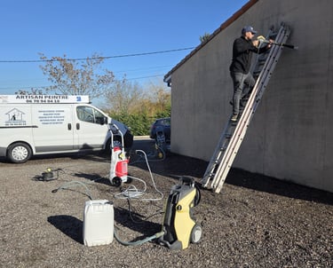 Au-delà du crépi, nous réalisons des ravalements complets de façade : nettoyage haute pression, traitement des fissures, rebouchage, application d'un fixateur puis d'une peinture ou d'un enduit de finition. Chaque étape est indispensable pour garantir un résultat durable et une protection efficace contre l'humidité.