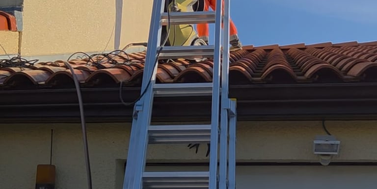 2. Montée sur le toit et inspection complète Le jour du rendez-vous, notre artisan accède à votre toiture en toute sécurité avec son équipement professionnel. Il inspecte méthodiquement chaque zone : tuiles, ardoises, faîtage, arêtiers, noues, solins, gouttières, sorties de ventilation et raccords de cheminée. Rien n'est laissé au hasard.
